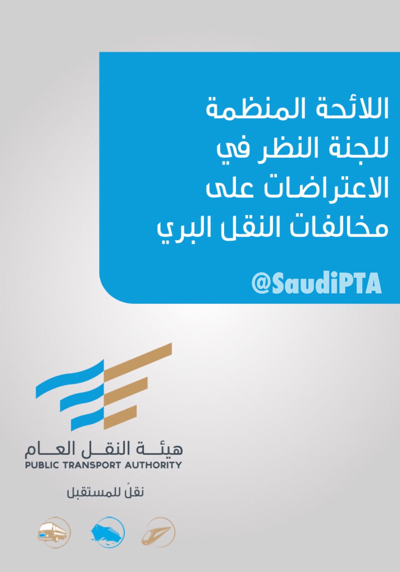 مخالفات هيئة النقل العام. أصدر مجلس الوزراء السعودي قرار ا بتأسيس هيئة النقل العام في الأول من أكتوبر 2012 وصدر الدور التنظيمي لهيئة النقل العام في 23 يوليو 2013 وقد وافق مجلس. هيئة العامة للنقل. غرامات هيئة النقل العان بالمملكة. أوضحت هيئة النقل العام آلية الاعتراض على مخالفات الهيئة حيث يمكن الاتصال على الرقم 920014914 ويليه تأكيد الهيئة استلام الطلب برسالة نصية على الهاتف الجوال شاملة رقم الطلب.