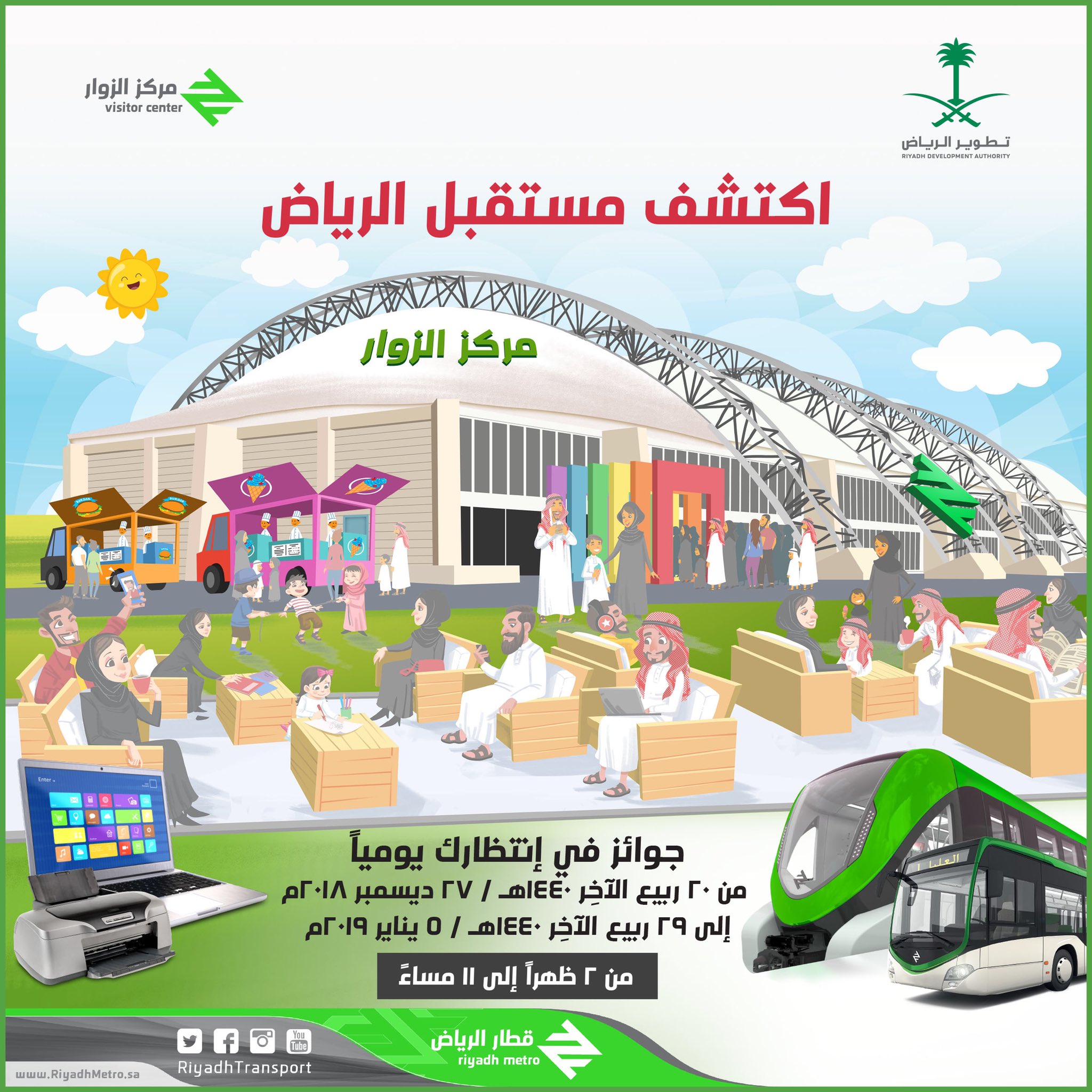 قطار الرياض الكهربائي معروف بمسمى مترو الرياض هو جزء من مشروع الملك عبد العزيز للنقل العام بمدينة الرياض الذي يتكون من القطارات والحافلات حيث يتم إنشاء ستة خطوط مترو رئيسية تخترق العاصمة السعودية الرياض من جميع. لاقت مسابقة اكتشف مستقبل الرياض التي أطلقتها هيئة تطوير مدينة الرياض لمرتادي مركز زوار مشروع النقل العام في مدينة الرياض تزامنا مع إجازة منتصف العام الدراسي حضورا وتفاعلا كبيرا خاصة من قبل الأسر السعودية التي. لقد تم تأسيس مركز الزوار الخاص بمشروع النقل العام بهدف تثقيف وتعريف سكان مدينة الرياض بأهمية المشروع الأكبر من نوعه للنقل العام والذي يجري إنشاؤه حاليا في مدينة الرياض وتم تأسيسه أيضا بهدف جعله وجهة ترفيهية.