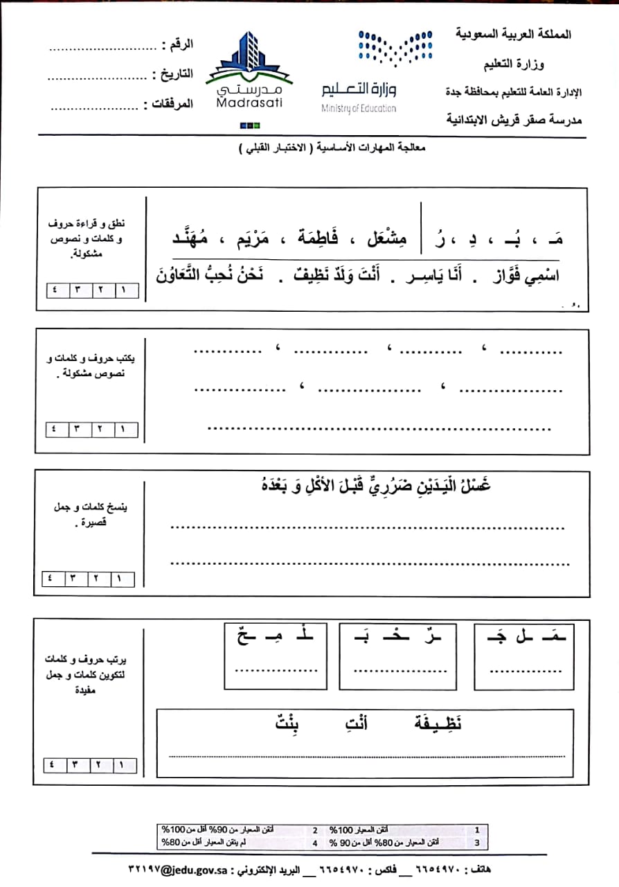 خطة معالجة المهارات الاساسية للطلاب ح.